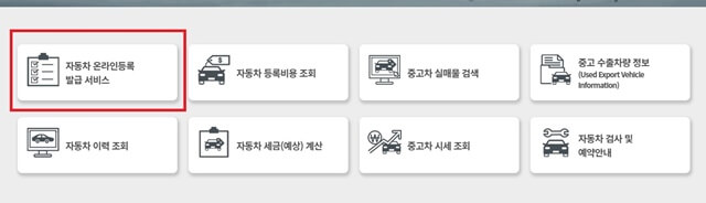 그러면 아래와 같은 화면이 나오는데 여기에서 ✅ 자동차 온라인등록 발급 서비스를 클릭합니다.